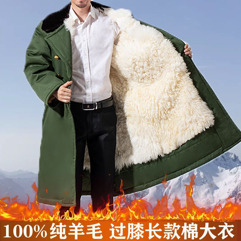 冬季羊皮军棉大衣真羊皮毛一体大衣男加厚长款保暖防寒棉大衣棉袄