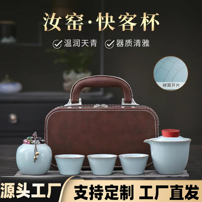 汝窑旅行茶具户外便携式快客杯一壶三杯功夫茶具套装礼品代发包邮