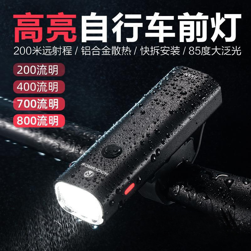 洛克兄弟自行车灯夜骑强光手电筒充电前灯防雨山地车骑行装备包邮