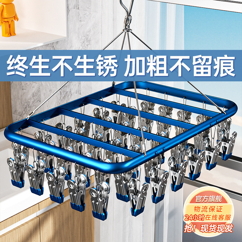 袜子晾晒架不锈钢晾衣架阳台家用带多夹子衣架多功能晒内衣夹神器