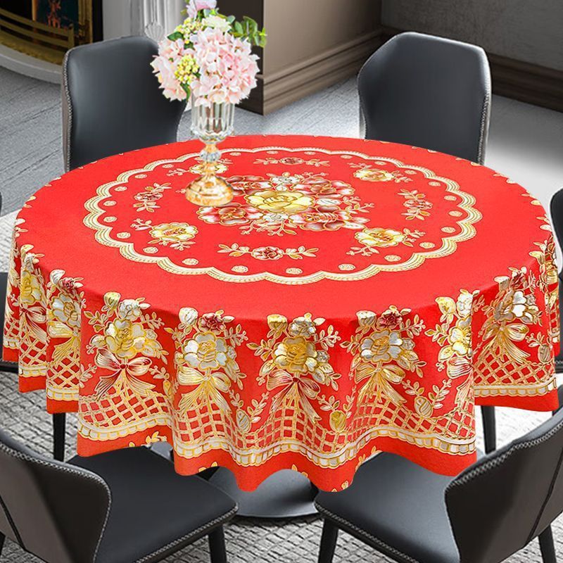 新款印花中国红桌布桌面布烫金桌布圆形方形新年喜庆红色桌垫代发