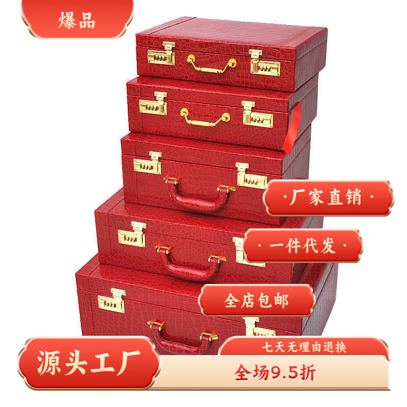 保存箱子收纳箱红色嫁妆结婚皮箱红陪嫁秀禾服纪念官箱手提密码箱