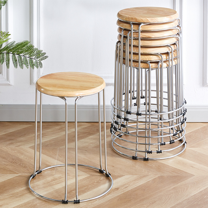 实木圆凳不锈钢凳子可叠放套凳铁艺椅子板凳加厚家用餐桌凳塑料凳