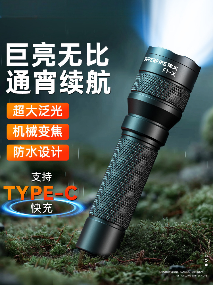 神火手电筒强光充电式超亮便携变焦登山户外家用耐用小型2025新款