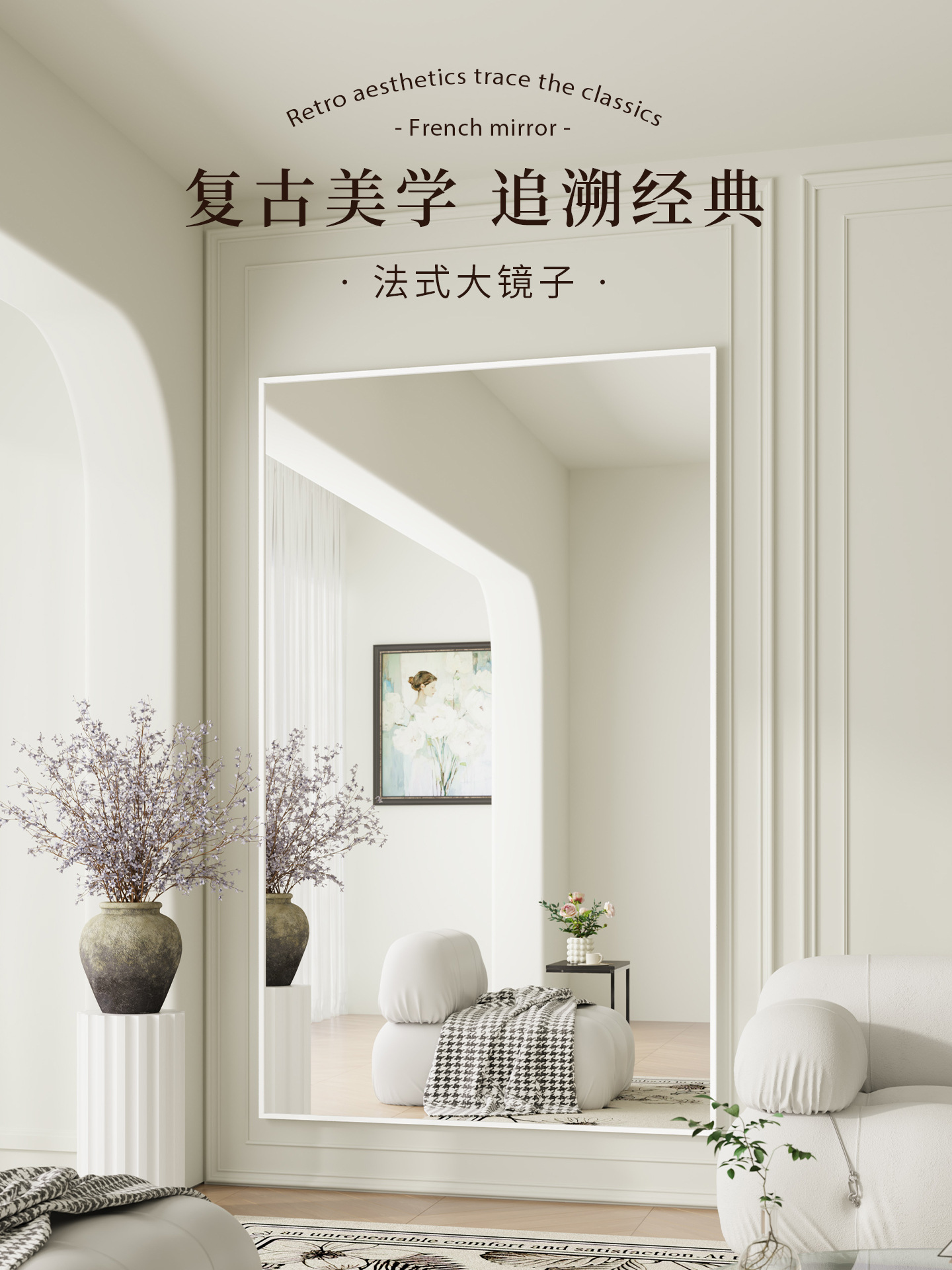 镜子上墙全身镜家用玄关入户穿衣镜贴墙小户型法式壁挂试衣镜