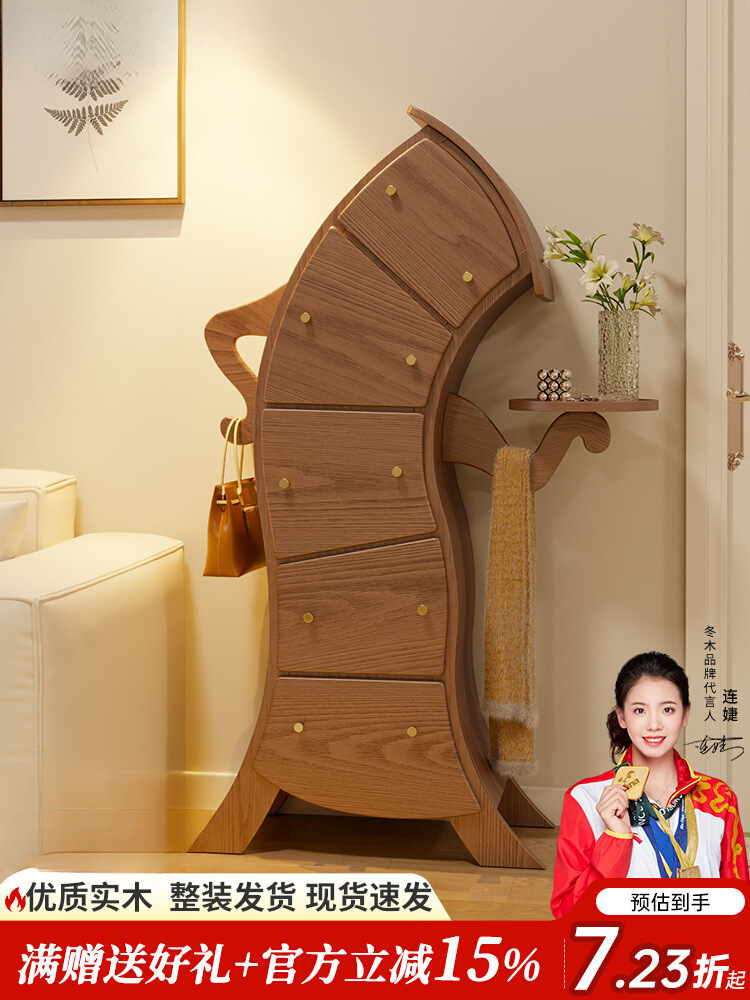 冬木实木叉腰斗柜卧室收纳柜机器人歪柜子轻奢储物柜子客厅五斗柜