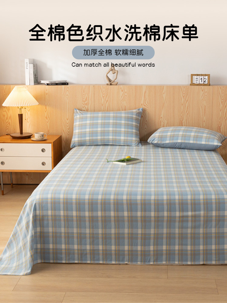 全棉水洗棉床单单件100纯棉被单枕套三件套学生宿舍单人