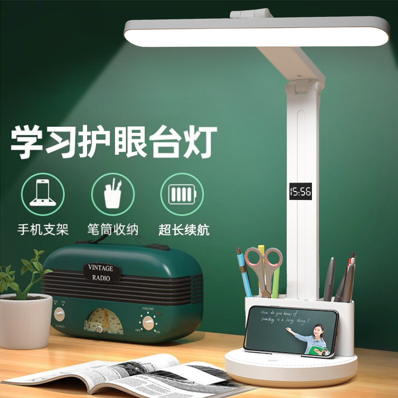 台灯学习专用学生2025新款宿舍书桌时钟阅读床头灯防近视护眼神器