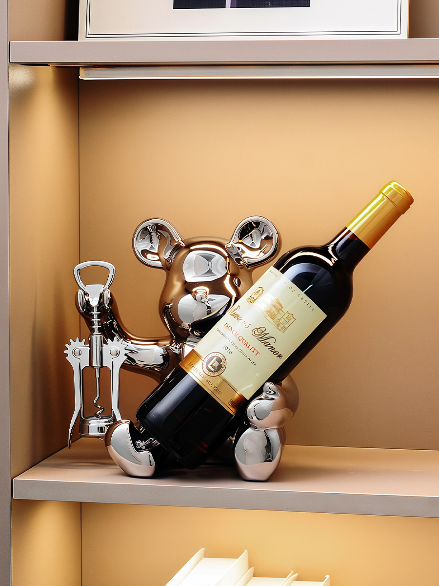 轻奢高档暴力熊红酒架摆件家居客厅餐边柜酒柜高级感软装装饰品