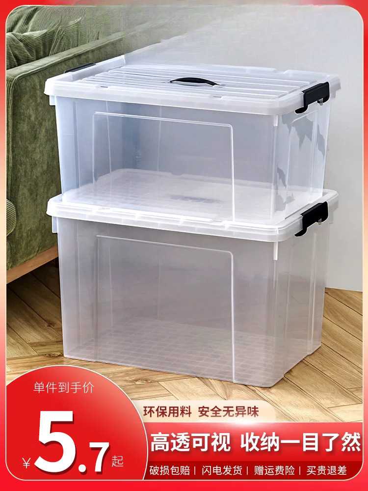 特大号透明收纳箱家用衣服玩具整理箱加厚带提手塑料储物箱收纳盒