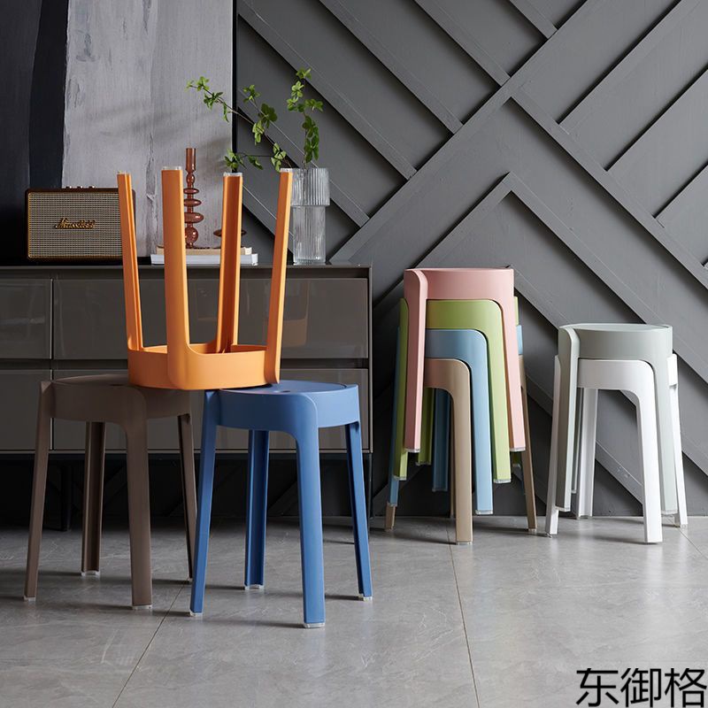 特厚旋风凳子家用客厅高脚凳可叠放现代简约圆凳塑料高凳餐桌椅子