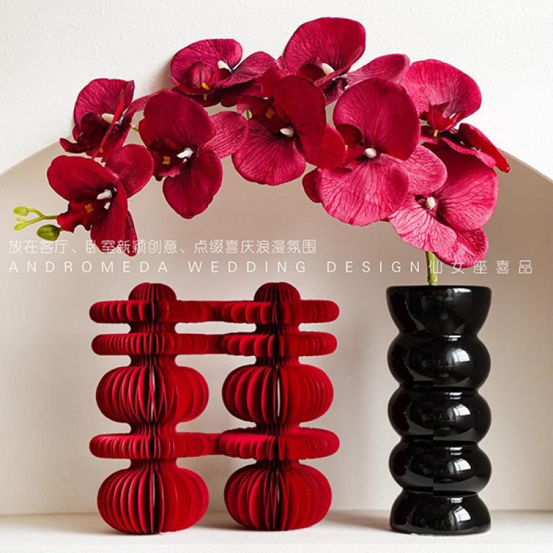 结婚花瓶喜字摆件蝴蝶兰红色仿真花客厅卧室婚房布置插花装饰中式