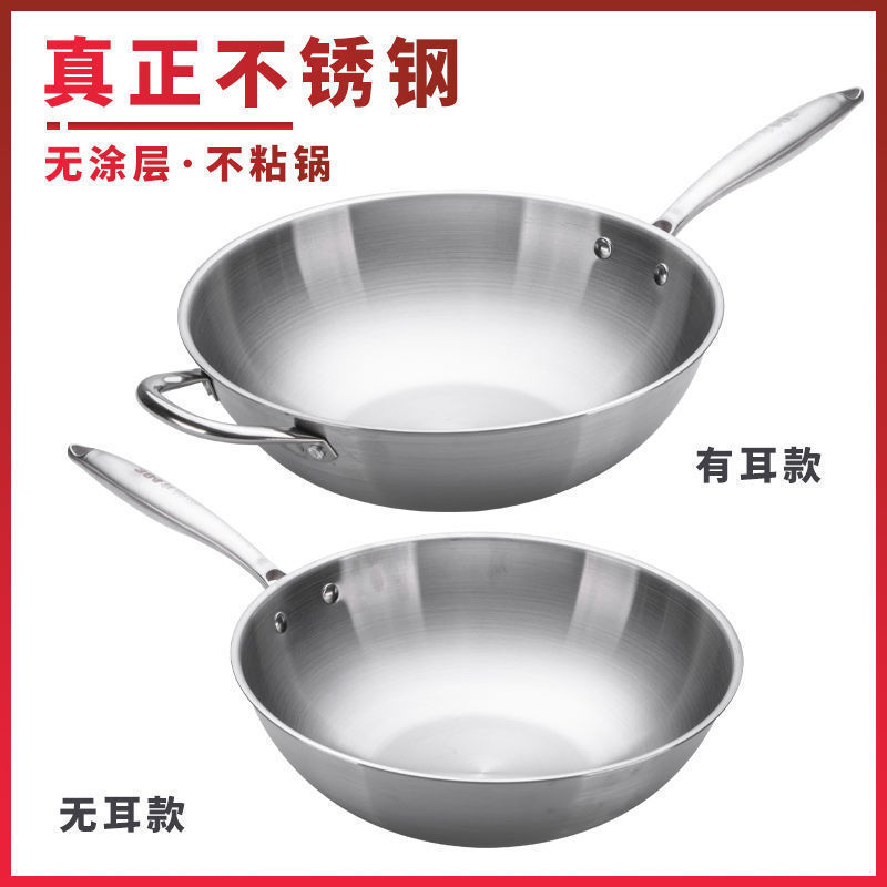 厨师无油烟不粘锅不锈钢炒锅家用无涂层炒菜锅电磁炉燃气适用进口