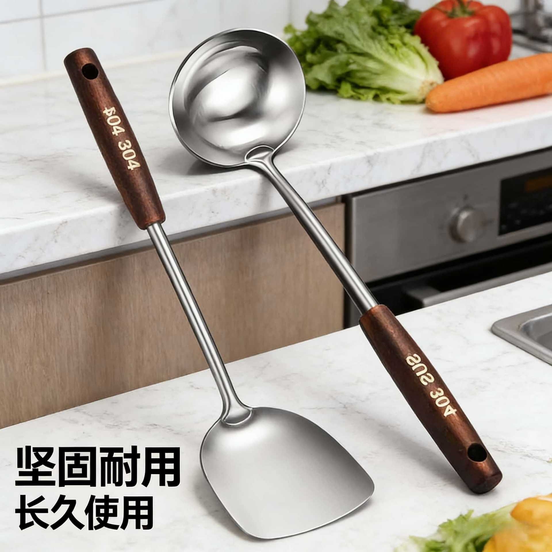 多功能家用不锈钢木柄锅铲加长炒菜铲子套装厨房厨师用勺汤勺锅铲