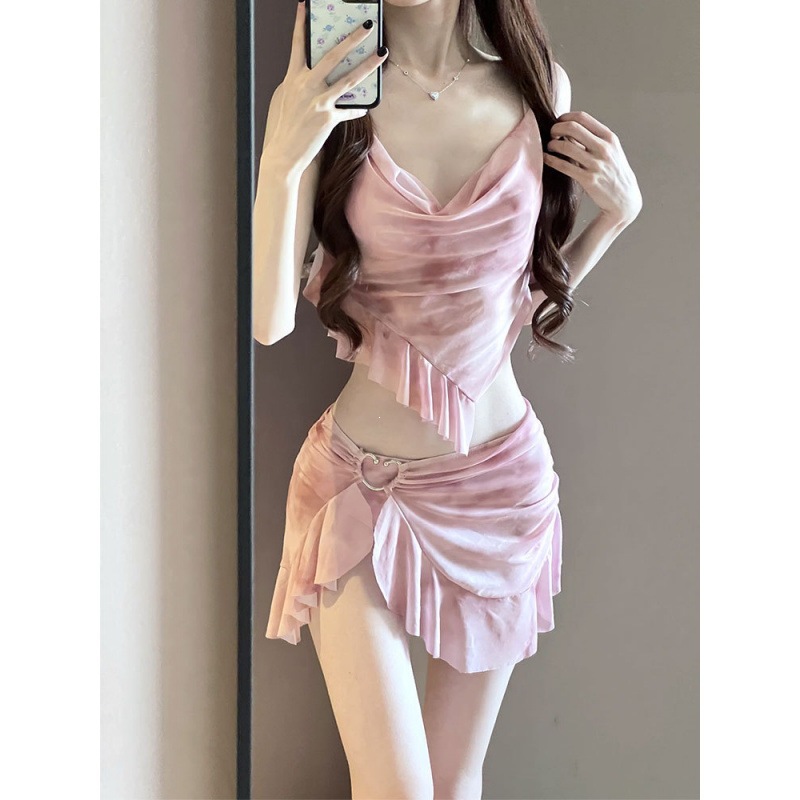 比基尼泳衣女2025新款分体三件套长裙性感聚拢带钢托海边度假泳装