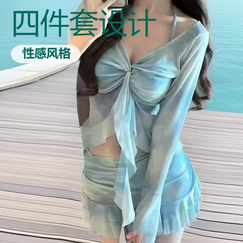 泳衣女款2026年新款性感分体裙式四件套比基尼泡温泉长袖泳装爆款