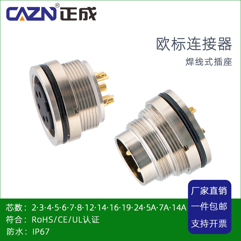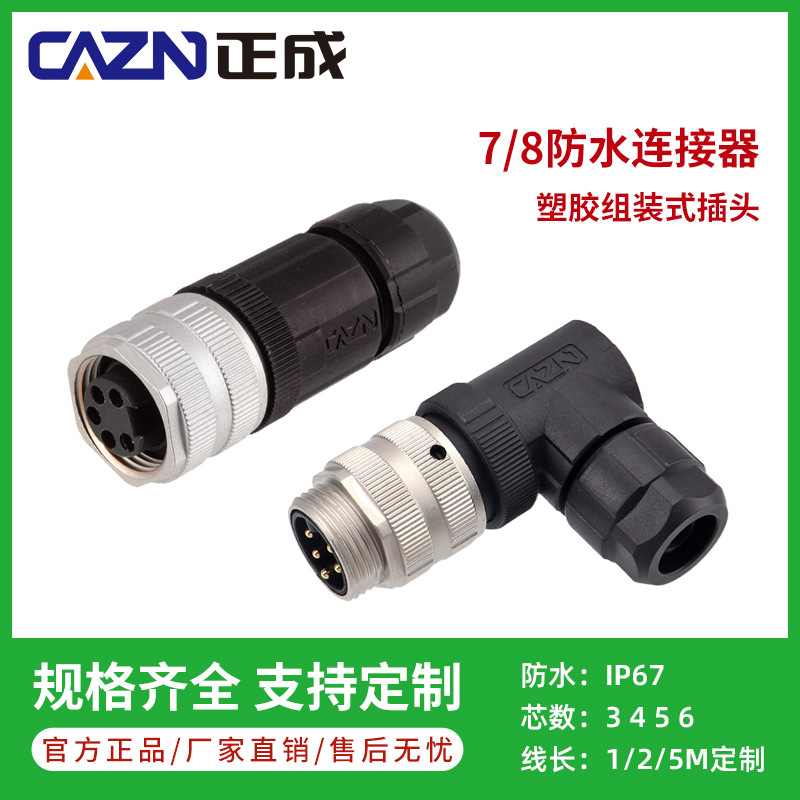 正成7/8防水连接器3芯4针5孔6pin组装式插头针型孔型IP67航空插头