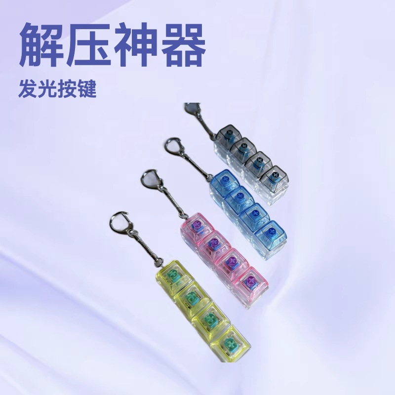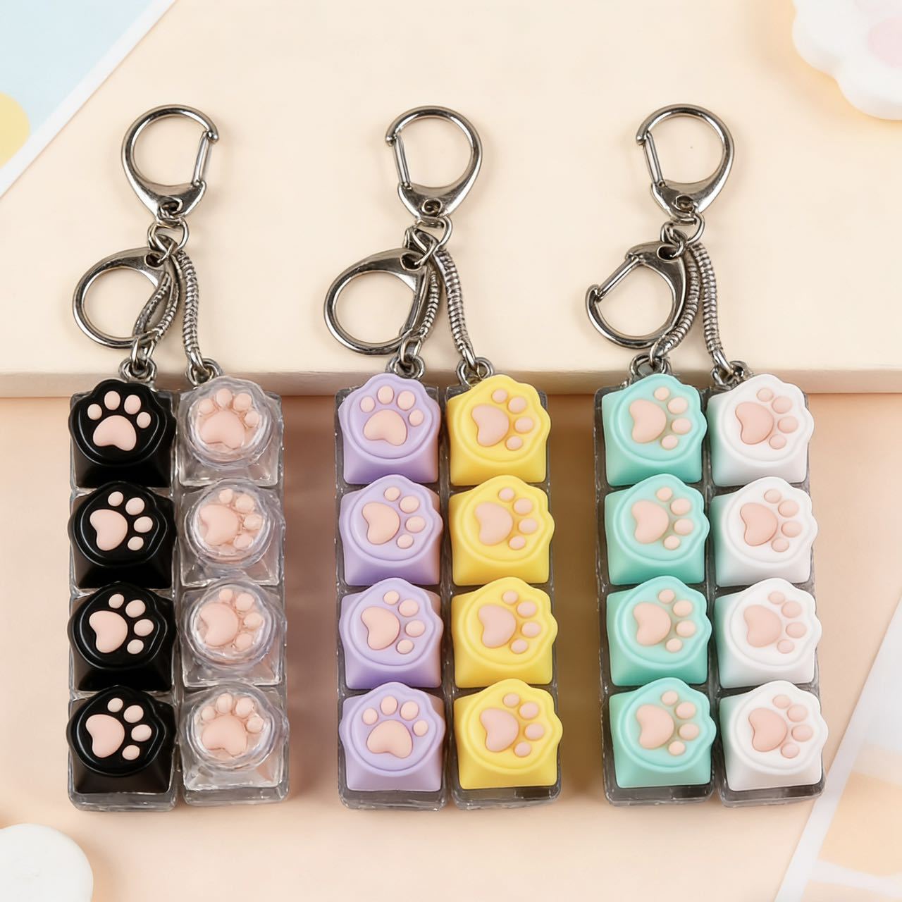 彩色4键解压猫爪按键卡通图案试轴器键盘按键钥匙扣玩具批发
