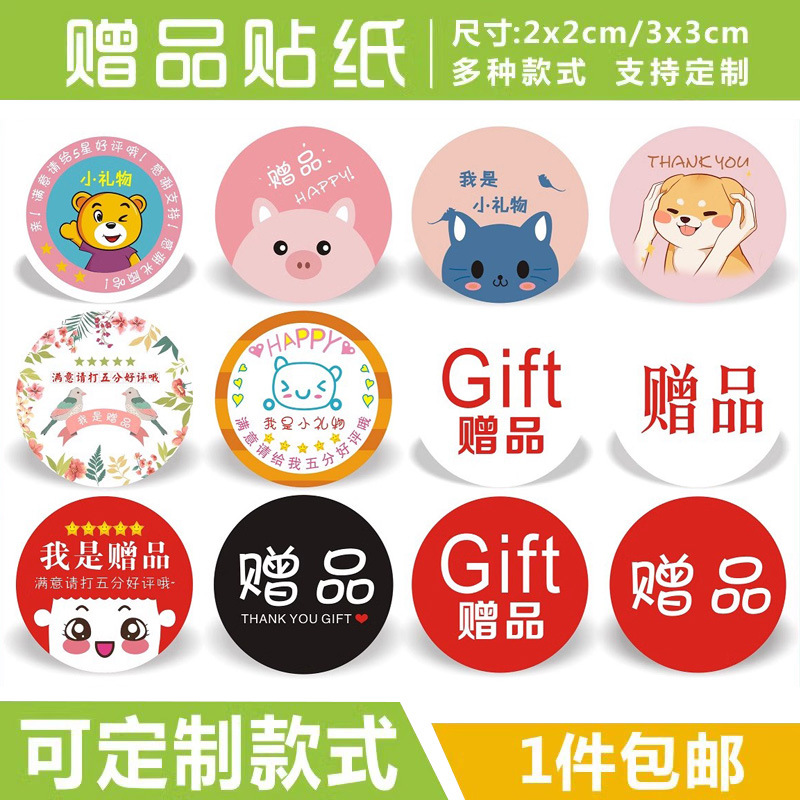 现货可爱赠品卡通礼品商超不干胶创意小礼物标签圆形快递好评贴纸