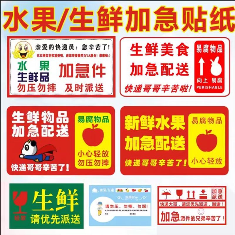 现货生鲜速递不干胶水果加急派送件生鲜提示快递贴加急标签贴定做