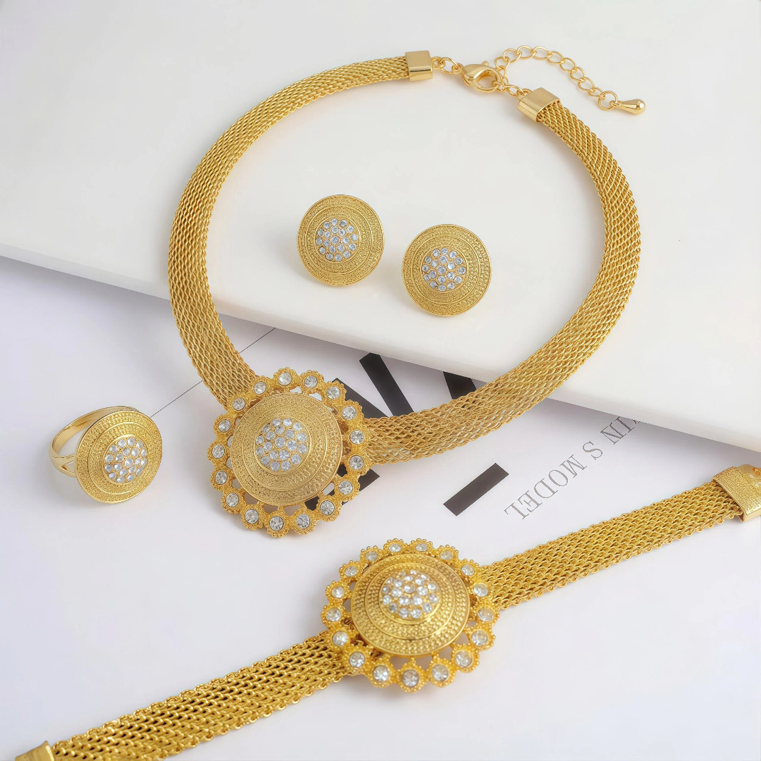 中东非洲ins风铜镀金奢华首饰套装微镶钻适合婚礼派对穿戴可定 制