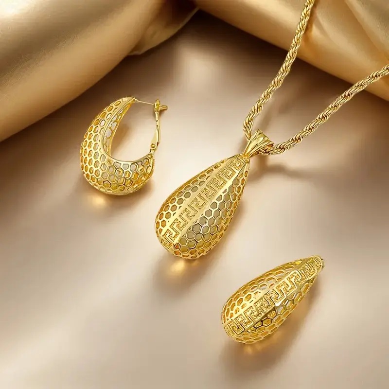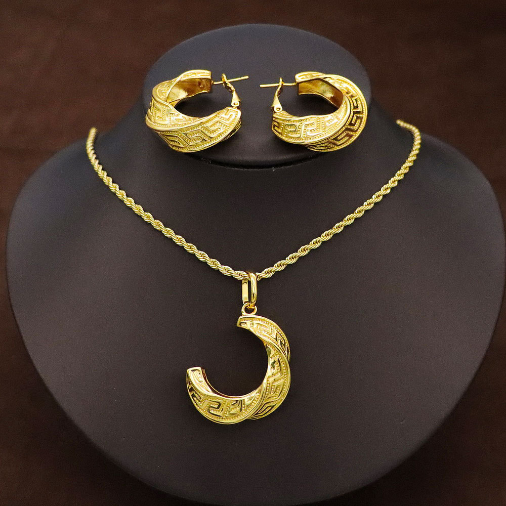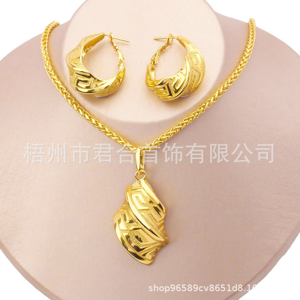 欧美中东流行首饰套装优雅新娘婚礼百搭铜镀金吊坠项链耳环两件套
