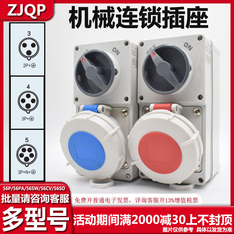 ZJQP大电流带防水隔离开关机械连锁插座欧标航空工业插头插座互锁
