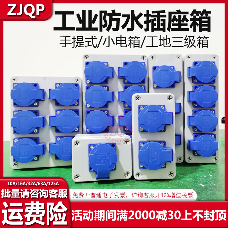 千普ABS塑料防水工业插座箱220V国标五孔10a 16A二三五孔配电箱