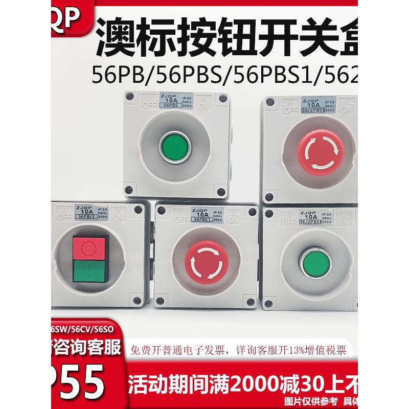 ZJQP澳标防水按钮开关控制盒56PB 56PBS急停56PBS1 56PBS2 56/2PB