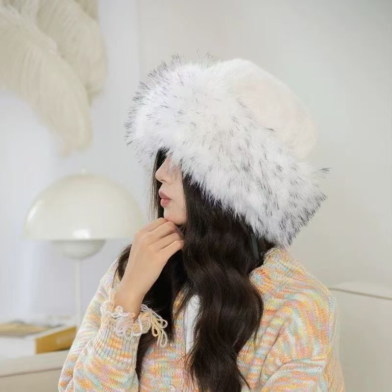 2025批发新款女秋冬豹纹蒙古帽仿皮草时尚保暖渔夫帽仿貂毛水桶帽