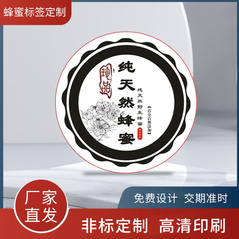 厂家印刷蜂蜜不干胶标签广告不干胶封口贴设计二维码透明贴纸批发