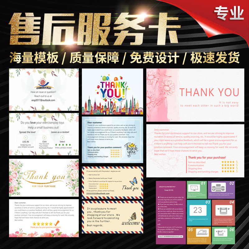 亚马逊售后服务卡感谢卡明信片定 制广告牌定 做纸卡厂家批发