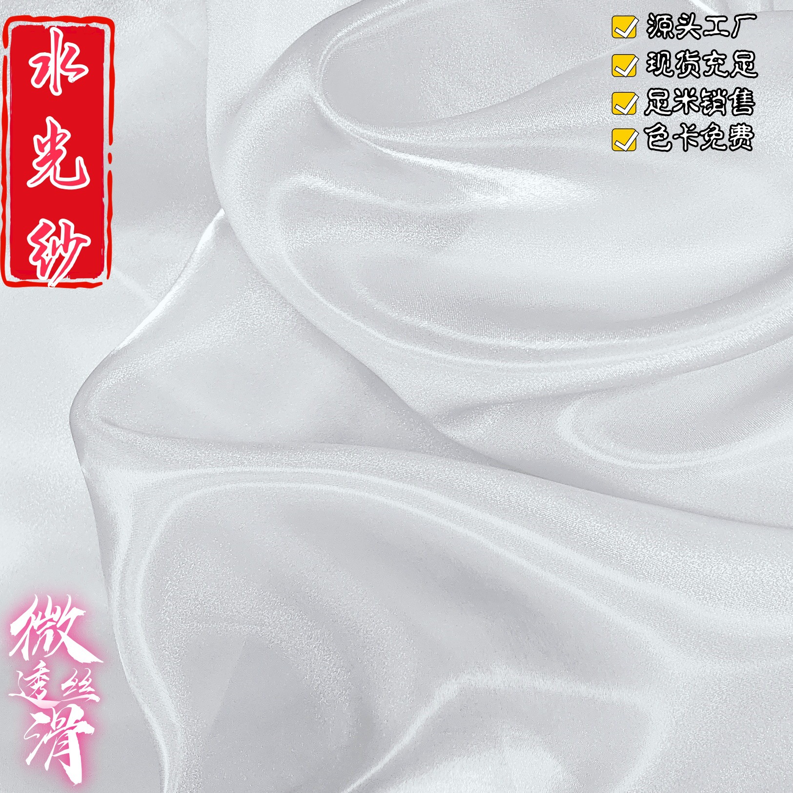 批发现货海岛顺纡皱顺纡绉亮丝流光缎半透丝滑垂顺微皱欧根纱面料