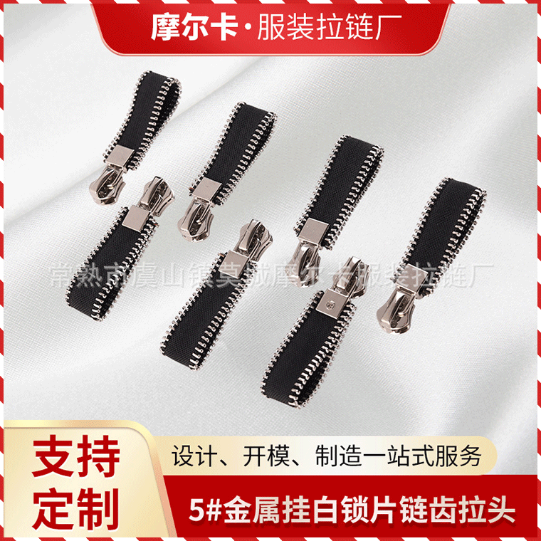 厂家批发女款5号金属挂白锁片+链齿拉头箱包女装鞋靴5号拉链头