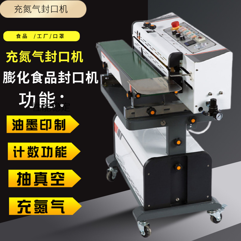 封口机充氮气真空包装袋食品充气抽气连续式真空抽气口罩包装机封