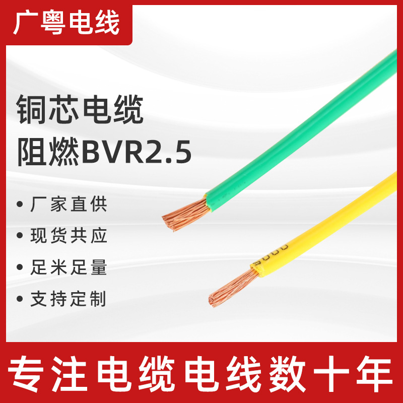广粤电线电缆阻燃单芯多股硬线BV1.5/2.5/4/6/10平方家装工程电线