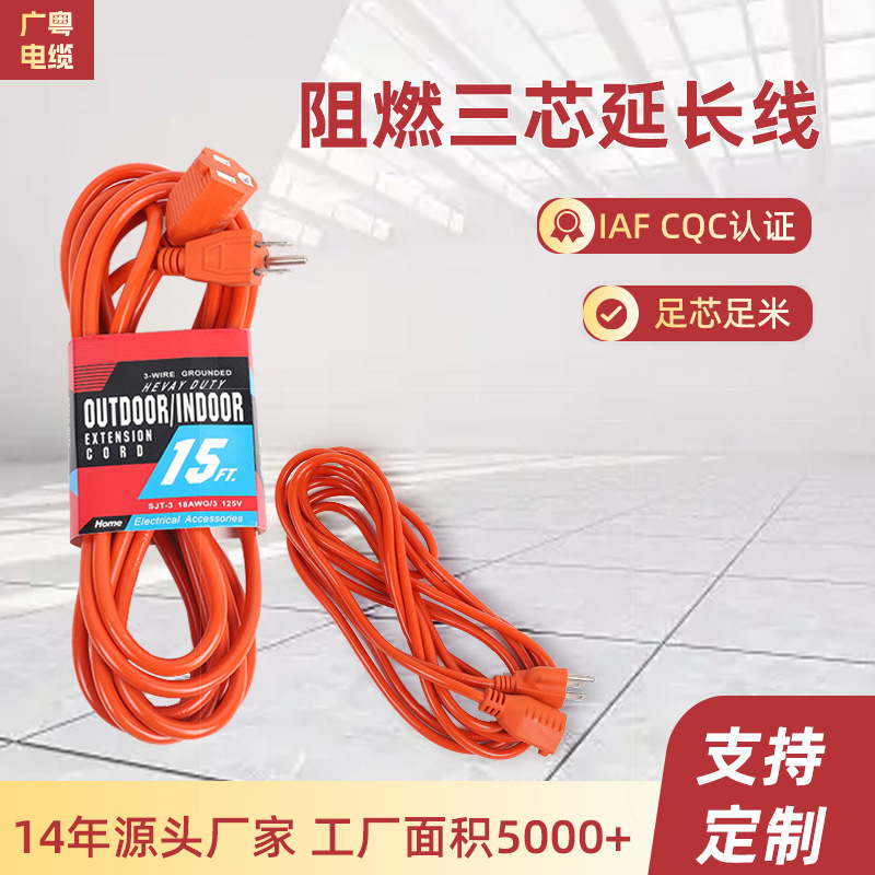 阻燃美式延长线RVV3*2.5平方纯铜电缆线3芯电源线南美延长线定制