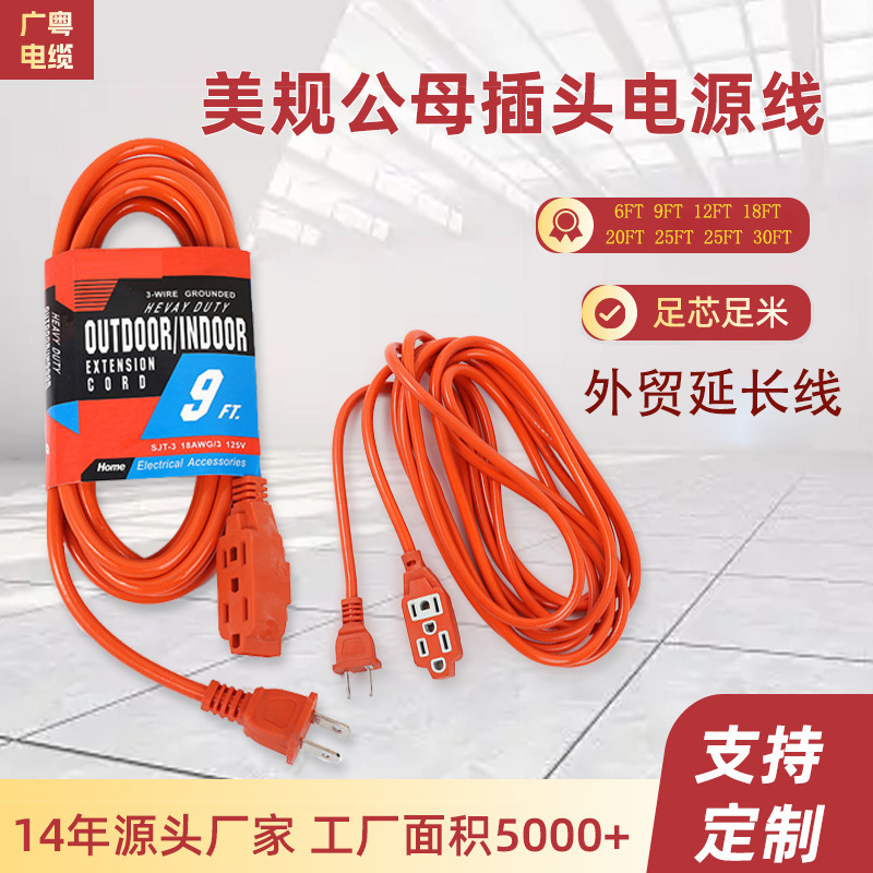 厂家定制三芯南美延长线专用电源线电动工具电源线美式延长线批发
