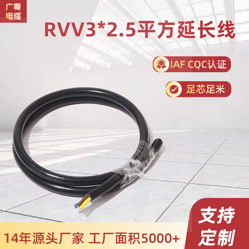 RVV三芯电线家用家装电线电缆阻燃平方铝导体护套线南美延长线
