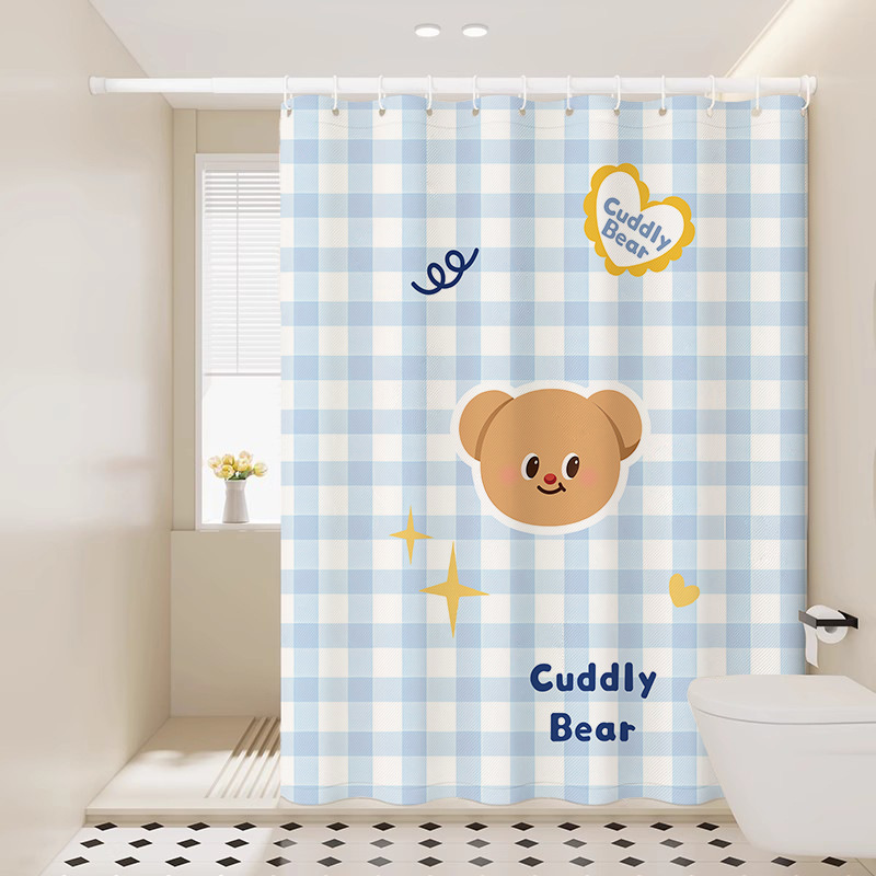可爱小猫浴帘防水布免打孔洗澡浴室卫生间淋浴间隔断干湿分离挂帘