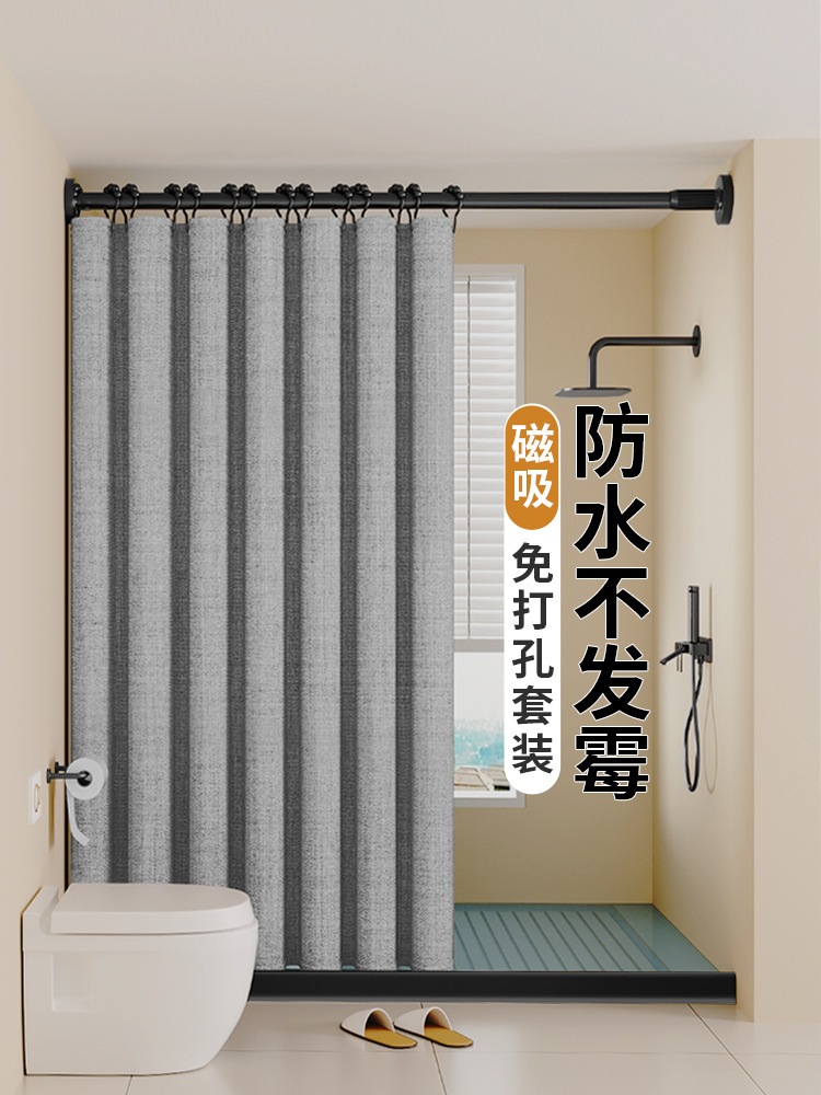 磁吸浴帘卫生间洗澡浴室防水布窗帘淋浴隔断挡水拉帘高档干湿分离