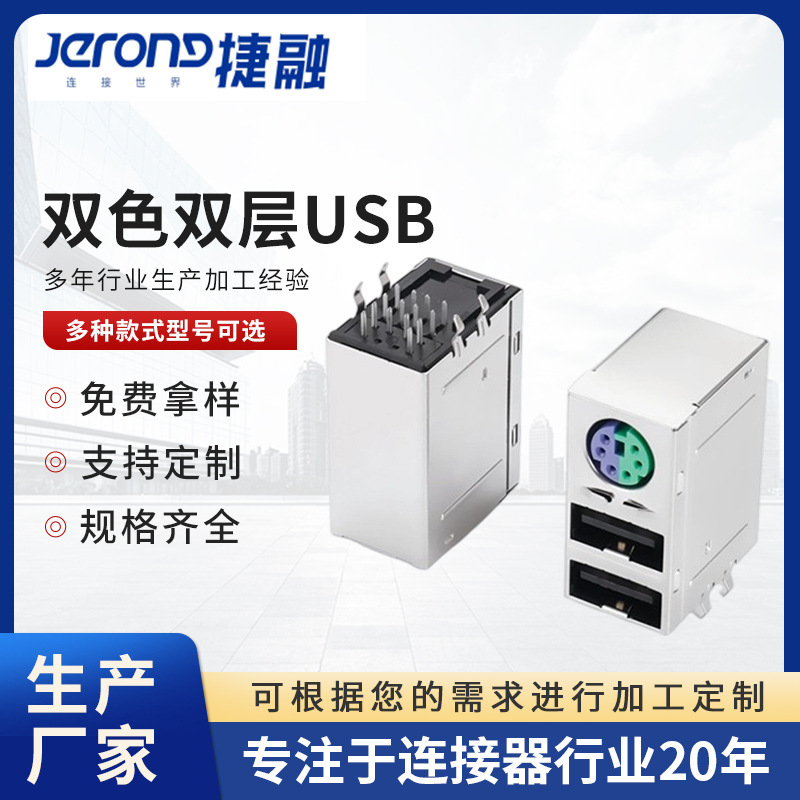 加工定制 DIN双色+双层USB连接器 2.0 MUF14L-26TN-18P4厂家批发