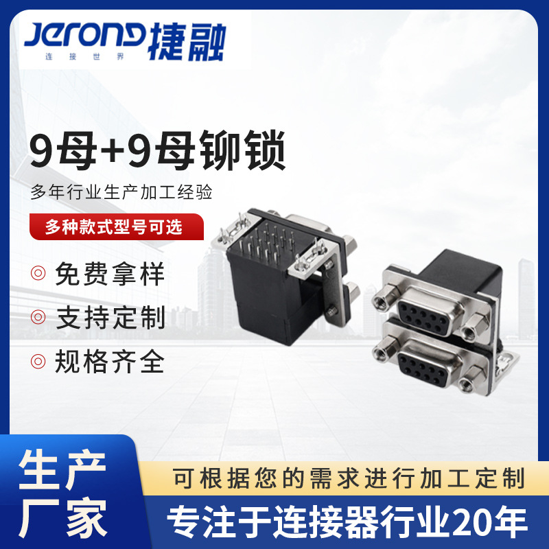DR9连接器 9母铆锁 串口座 插座 黑胶 焊板式厂家供应货源稳定