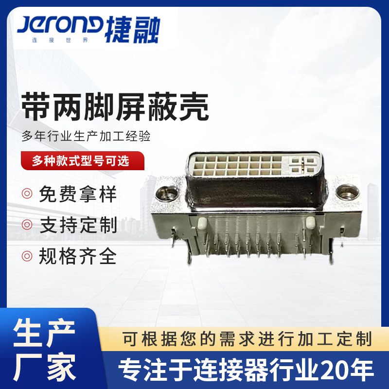 DVI24+5 90度胶芯贝吉色带两脚屏蔽壳 通讯插头焊板式直插连接器