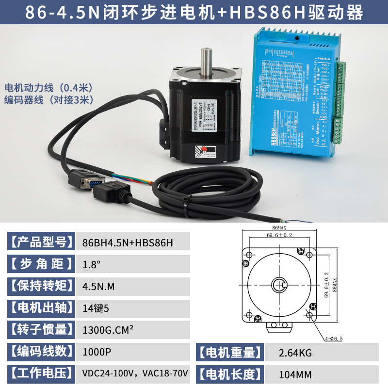 86全闭环高速恒扭矩步进伺服电机套装 闭环电机+数显驱动器 12N.m