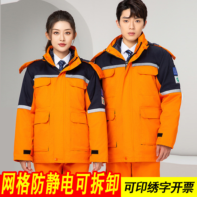 冬季网格防静电加油站棉服劳保服男可拆卸棉衣工装加厚保暖工作服