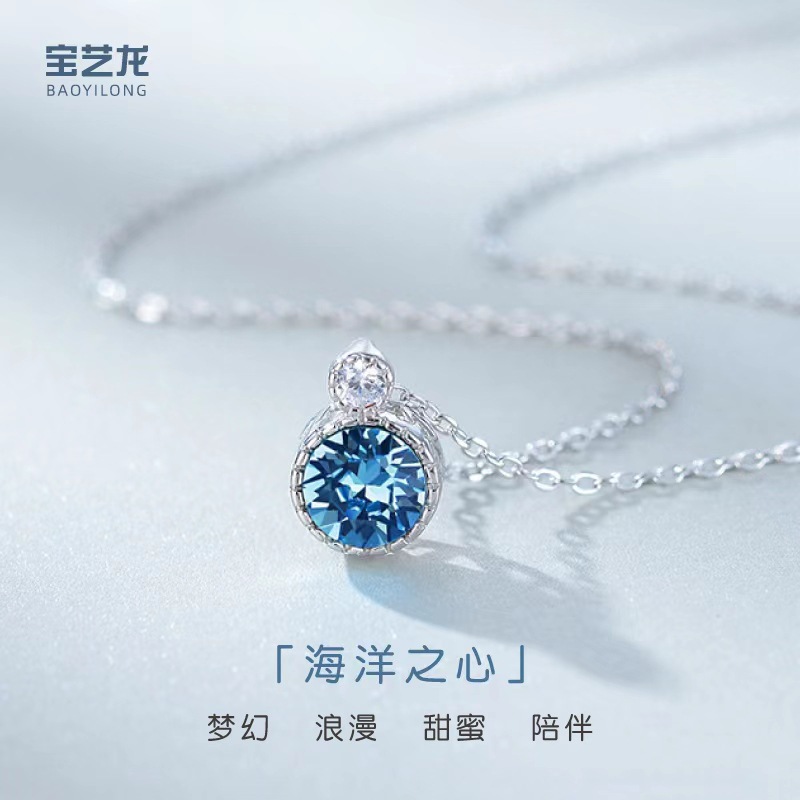 海洋之心925纯银项链女高级感轻奢镶钻水晶吊坠胸链首饰饰品配饰