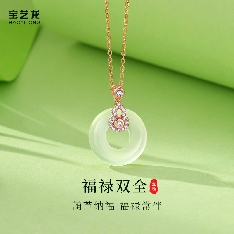 福禄安康天然非洲翠项链女S925纯银国风高级感镶钻葫芦吊坠锁骨链
