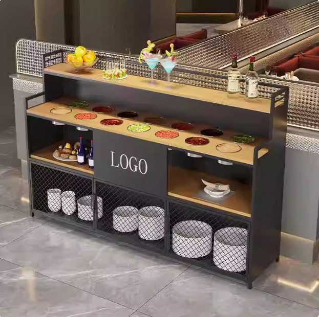 工业风实木火锅店调料台商用铁艺多层自助小料台大理石自助酱料台