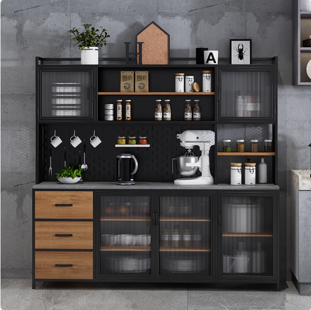 loft工业风岩板餐边柜一体靠墙高柜茶水柜厨房储物柜橱柜置物柜子